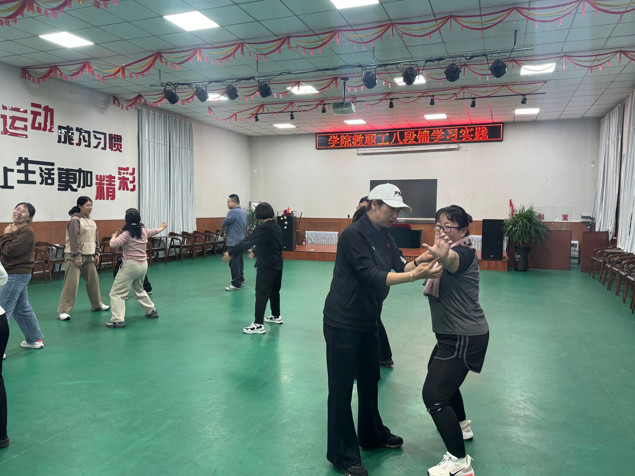 为切实将“为民办实事”落到实处,丰富全院教职工的业余文化生活,提升教职工身体素质,近日,机关第三党总支第四党支部联合学院工会精心策划并启动了以健康服务为核心的主题活动,得到了全院教职工的广泛关注与积极响应。 本次 “为民办实事” 主题活动聚焦教职工健康需求,建立了常态化服务机制,活动时间固定为每周二、周四晚上,为教职工参与活动提供了稳定且便捷的时间保障,有效解决了教职工因时间不固定而难以参与集体活动的问题。活动内容丰富实用,特别邀请了经验丰富的张玲老师和樊雪纯老师分别授课。其中,张玲老师负责教授八段锦,八段锦作为传统养生功法,动作舒缓柔和,能有效调节身心、缓解工作疲劳,帮助教职工在繁忙的工作之余放松身心、疏通经络;樊雪纯老师则带来活力满满的健美操课程,通过节奏明快的动作组合,既能增强教职工的心肺功能与身体协调性,又能营造轻松愉悦的运动氛围,让教职工在运动中释放压力、提振精神。 此次活动面向全院教职工开放,打破了部门壁垒,为教职工们搭建了一个交流互动、共同健身的平台。活动启动以来,不少教职工积极报名参与,大家纷纷表示,党支部与工会急教职工之所急,将 “为民办实事” 体现在了实实在在的健康服务中,这样的活动既实用又贴心,不仅有助于提升自身健康水平,也增强了团队的凝聚力与归属感。 机关第三党总支第四党支部与学院工会表示,未来将继续以教职工需求为导向,不断拓展 “为民办实事” 的服务领域与形式,推出更多贴合教职工实际需求的活动,切实为教职工排忧解难,为营造健康、和谐、积极向上的校园氛围贡献力量。